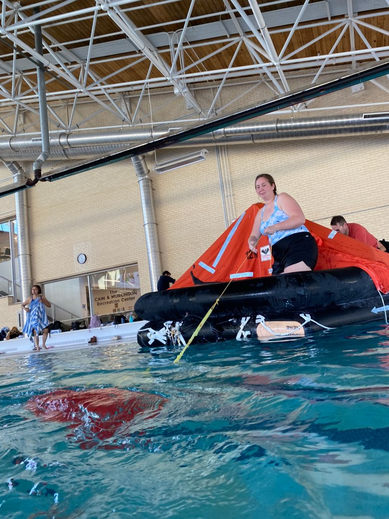 The week continued with excitement, on Thursday we all headed to a local indoor pool for the water simulations. Learning to float in immersion suits (emergency suits when a ship sinks) was a challenge and I pray we never have to witness wearing those in the Indian Ocean. Getting inside an inflatable raft, we learnt the different emergency signals and procedures to go through in case of listing or sinking. I could continue with all the information learnt last week but its a lot of ship talk;)