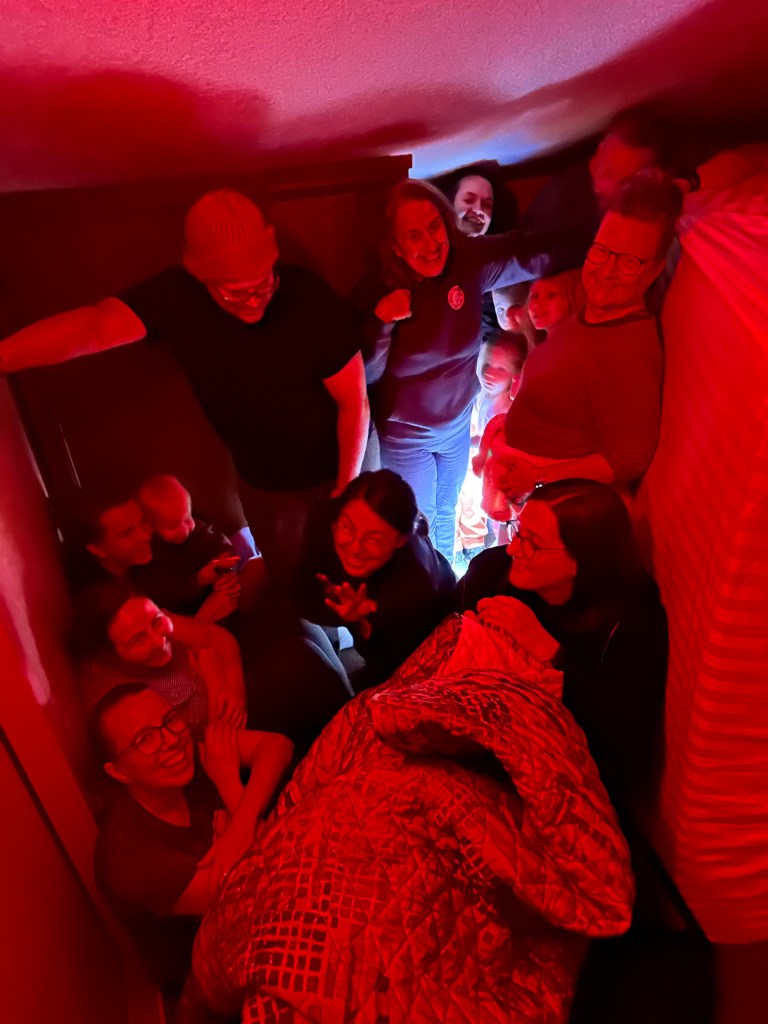 If we thought we already knew each other by spending the week together we were mistaken until we played a wild round of sardines. To illustrate real quickly it’s the opposite of hide and seek, where just 1 member goes and hides and everyone tries to find them. Once you found the hidden person you hide with them until the whole group is hidden. Imagine fitting 7 people into a single shower stall or pilling on top of one another behind a couch lead to tears of laugher.
